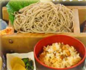 愛されて40年 伊豆高原名物サザエ飯とおそばのセットです。
