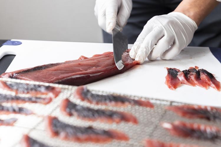 ヒューマングレード食材・無添加・保存料不使用です。 まぐろを新鮮なうちに全て手作業でスライス~乾燥させました。 手で裂けるので小型のワンちゃん猫ちゃんも食べやすいです。