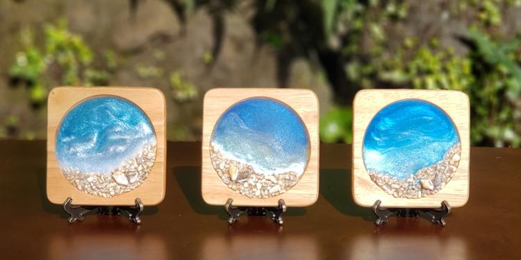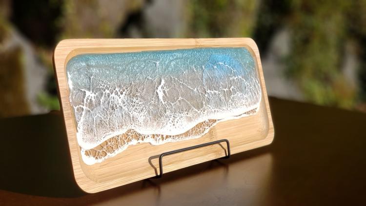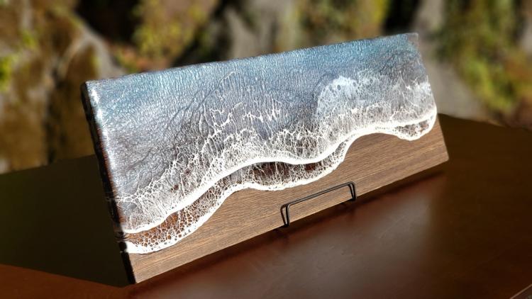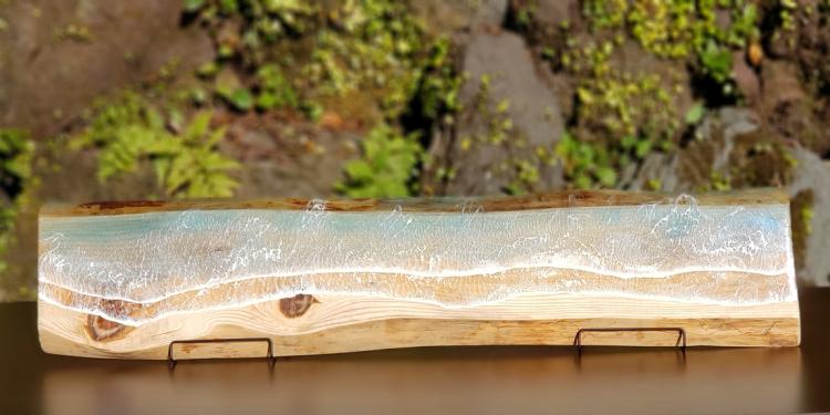 杉の自然な形と木目を生かした透き通るような波(74x15cm)